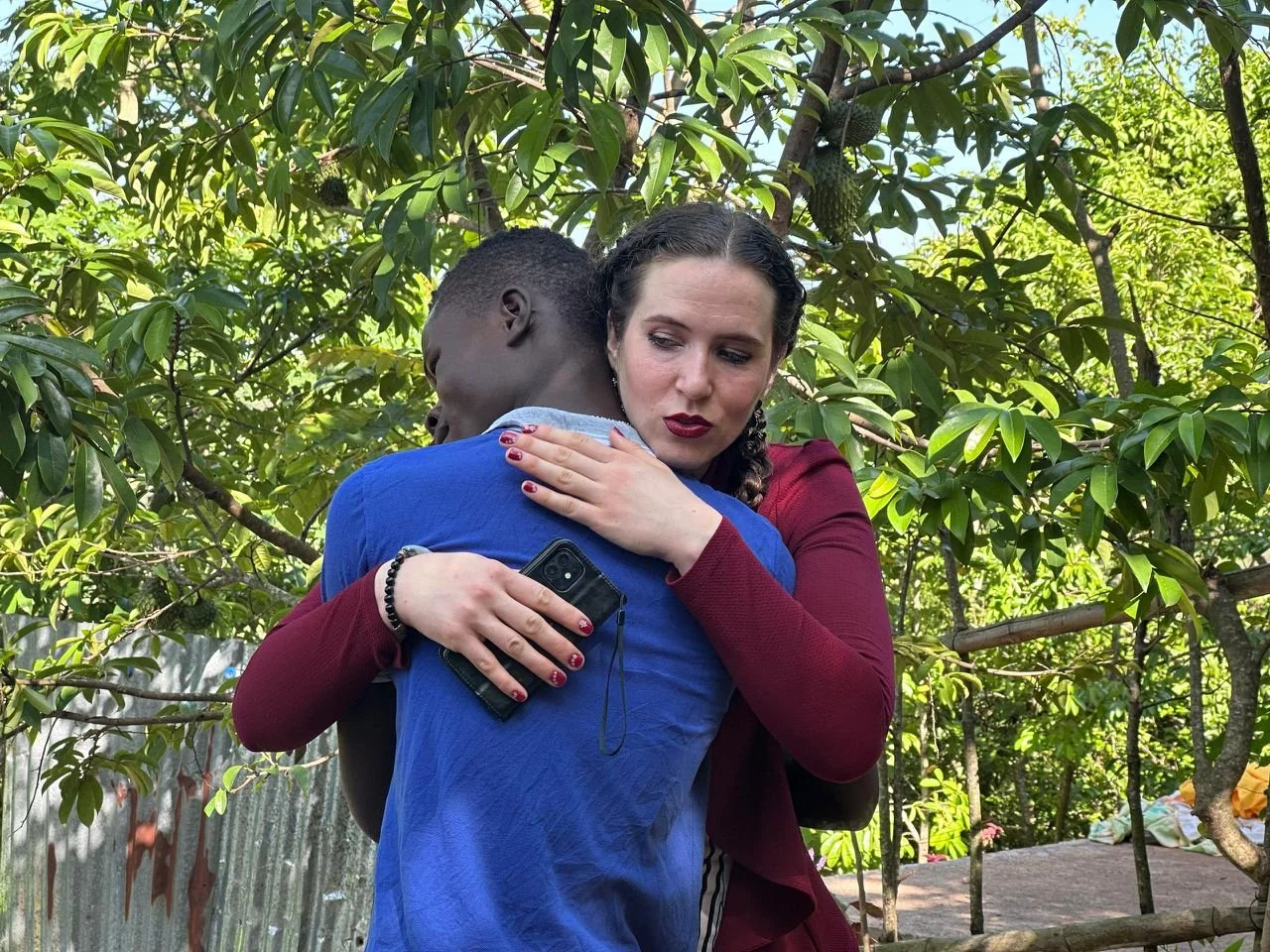 Morgan with a former street child who is now reunited with his mother after spending some time in our safe house.